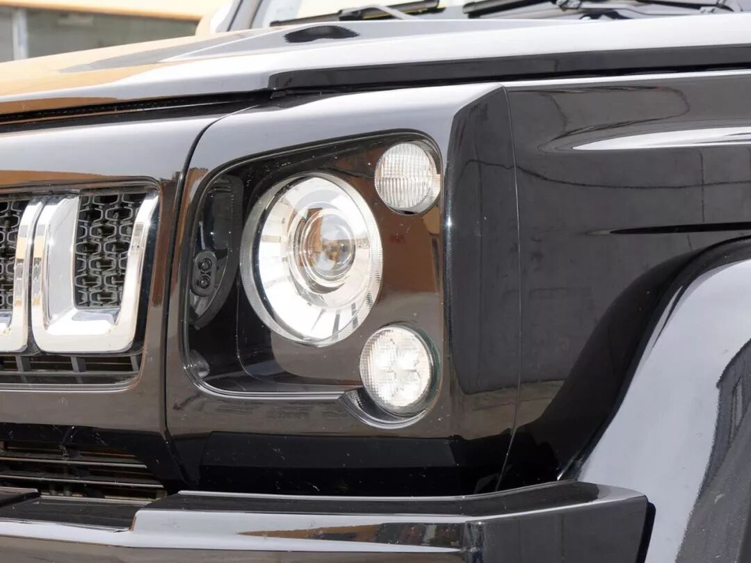从前脸说起比如车头灯的部分,但在这里BJ80并没有模仿奔驰G,而是找来了另一个效仿的对象——经典卫士,并且“自作聪明”的BJ80还将黄色转向灯和白色的车灯调换了位置。除此之外整个前脸的中网也有所差异,当然啦这些都是可以通过后期的更换以达到以假乱真的效果。